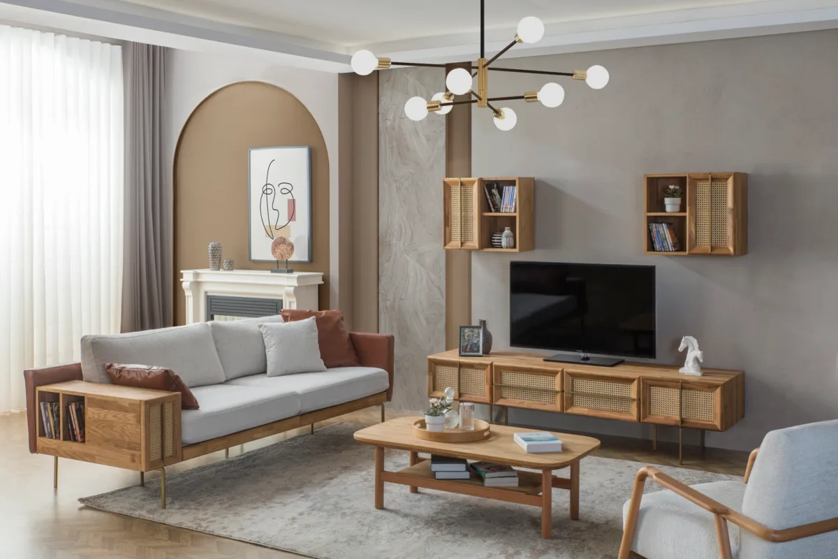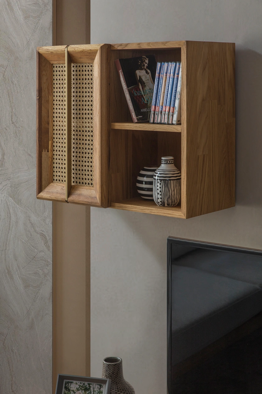 تُعد هذه الوحدة خيارًا مناسبًا ضمن أثاث غرفة المعيشة، حيث تم تصميمها لتؤدي دور مكتبة تلفزيون عملية. تحتوي على وحدات تخزين مفتوحة ومغلقة تتيح ترتيب أجهزة التلفزيون، أجهزة الاستقبال، والملحقات الأخرى بشكل منظم وسهل الوصول.