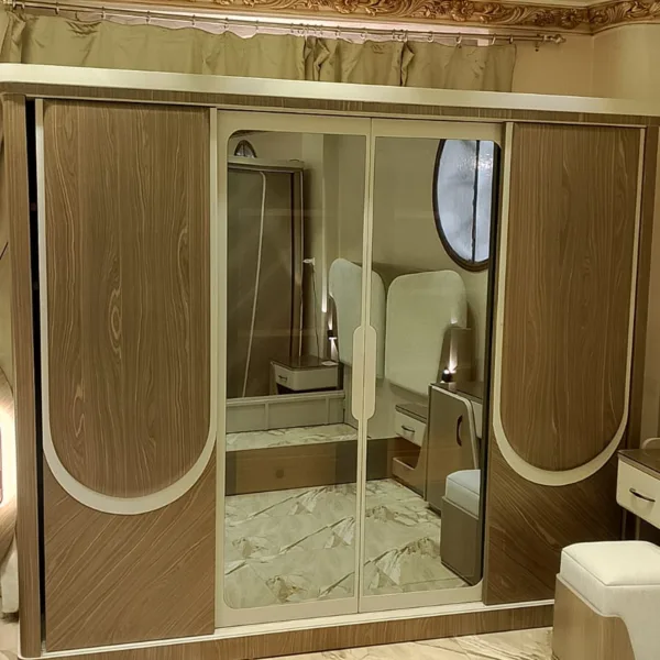 - دولاب جرار بمرايا لتوفير المساحة وتعزيز الإضاءة
