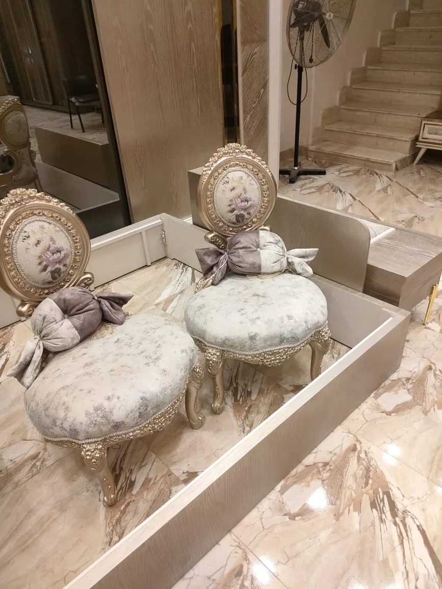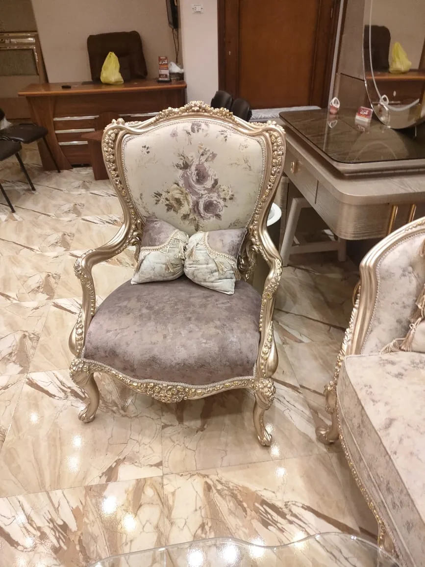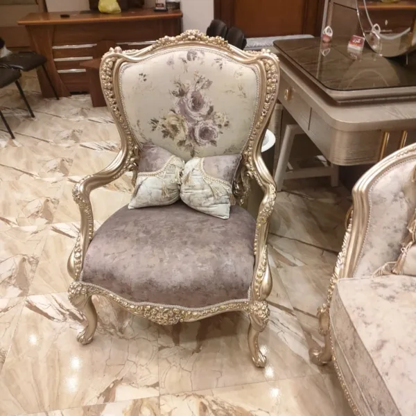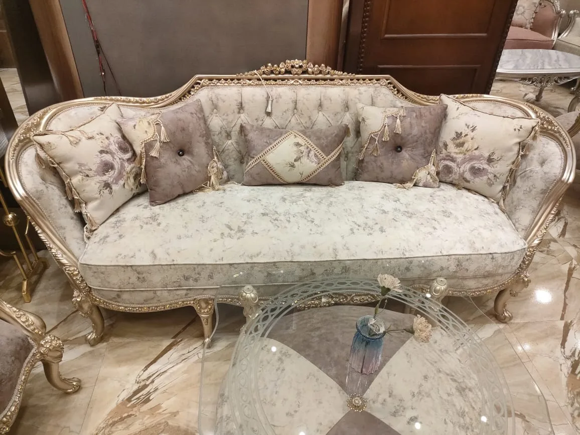 يُعد هذا الصالون خيارًا مثاليًا لمحبي الصالونات الكلاسيك الذهبية الذين يبحثون عن مزيج متوازن بين الجمال والمتانة.