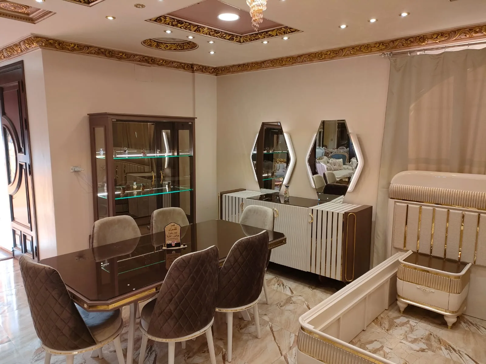 - مكونات الغرفة: ترابيزة + بوفيه بمرآة + نيش + 6 كراسي