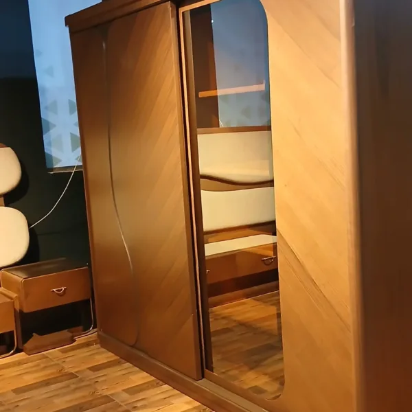 تم تصميم هذه الغرفة بأسلوب مودرن فاخر، يجمع بين البساطة الانسيابية والعملية المدروسة. تأتي مصنوعة بالكامل من أخشاب طبيعية “كبس دمياطي” عالية الجودة، ما يضمن لك متانة تدوم لسنوات دون تأثر بالعوامل الزمنية. ولتعزيز المظهر الراقي، تم تشطيب الغرفة بدهانات دوكو فرن بدرجات بنية أنيقة تبرز جمال الخطوط وتمنح القطع لمسة نهائية ناعمة وعصرية.